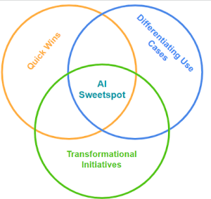Differentiating Usecases are areas that set you apart from your competition. It is not enough to implement quick wins that are run-of-the-mill as they do not unearth enough value to justify ongoing costs of AI initiatives. Therefore, these types of usecases are ideal to establish the value proposition.